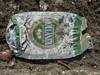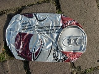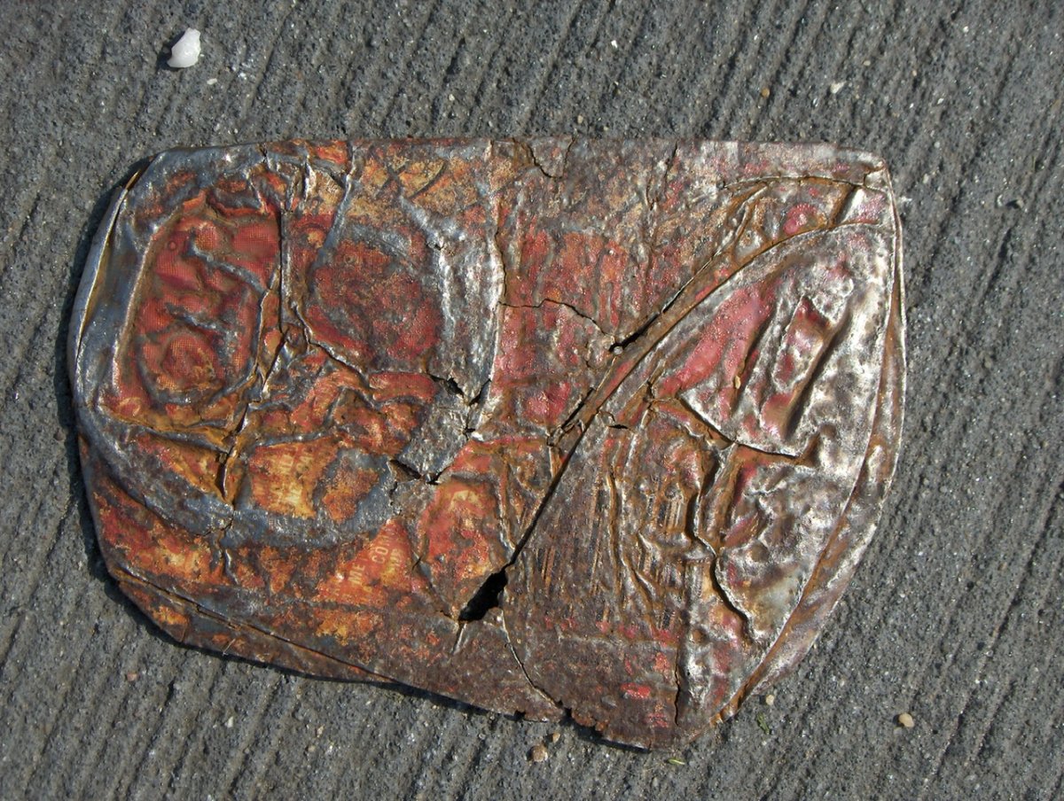 Op de fiets viel mijn oog op iets kleins. Een platgereden blikje, vastgeklemd in het asfalt. Verfrommeld, verweerd – en toch bijna sculpturaal.