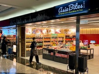 Na een ritje met een ondergrondse trein naar een ander deel van het vliegveld en een stevige wandeling over de loopband en en onderweg een groepje uitgelaten Chinese schoolkinderen te zien had ik nog net wat tijd om een lokale snack te scoren in een van de vele winkels op het vliegveld.