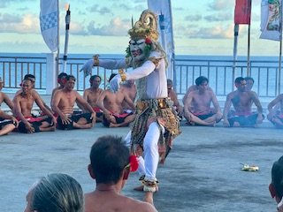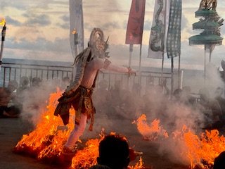 Deze dans werd op een hoge klif boven de zee bij Melasti Beach uitgevoerd en op de achtergrond was ook de zonsondergang te zien. Echter was deze dit keer niet zo spectaculair.