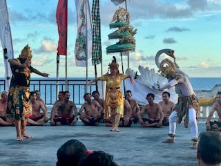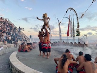 Dezelfde dag ben ik ook nog naar de Uluwatu Tempel geweest en aan het eind van de dag bij een uitvoering van de Balinese dans Kecak. Ze noemen dit zo omdat de dansers begeleid worden door een koor van mannen en het geluid is hoofdzakelijk “cak… cak… cak…”. Deze dans is afgeleid van de heilige dans “Sanghyang” die de communicatie tussen de mensen en hun voorouders of de goden laat zien.