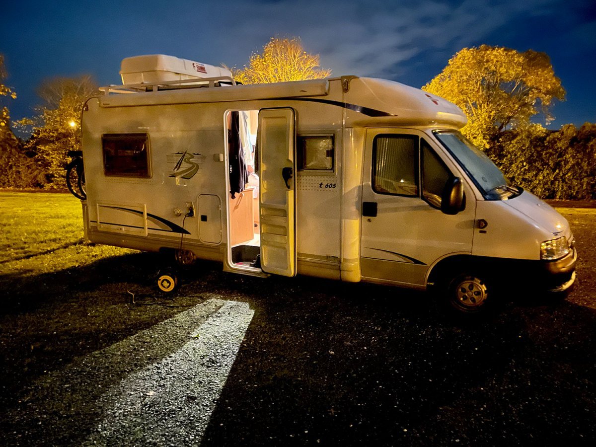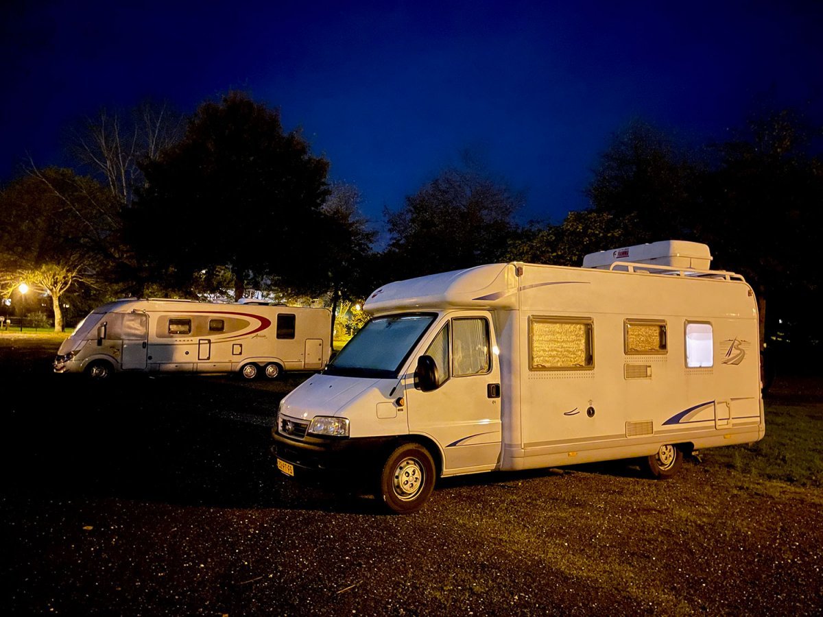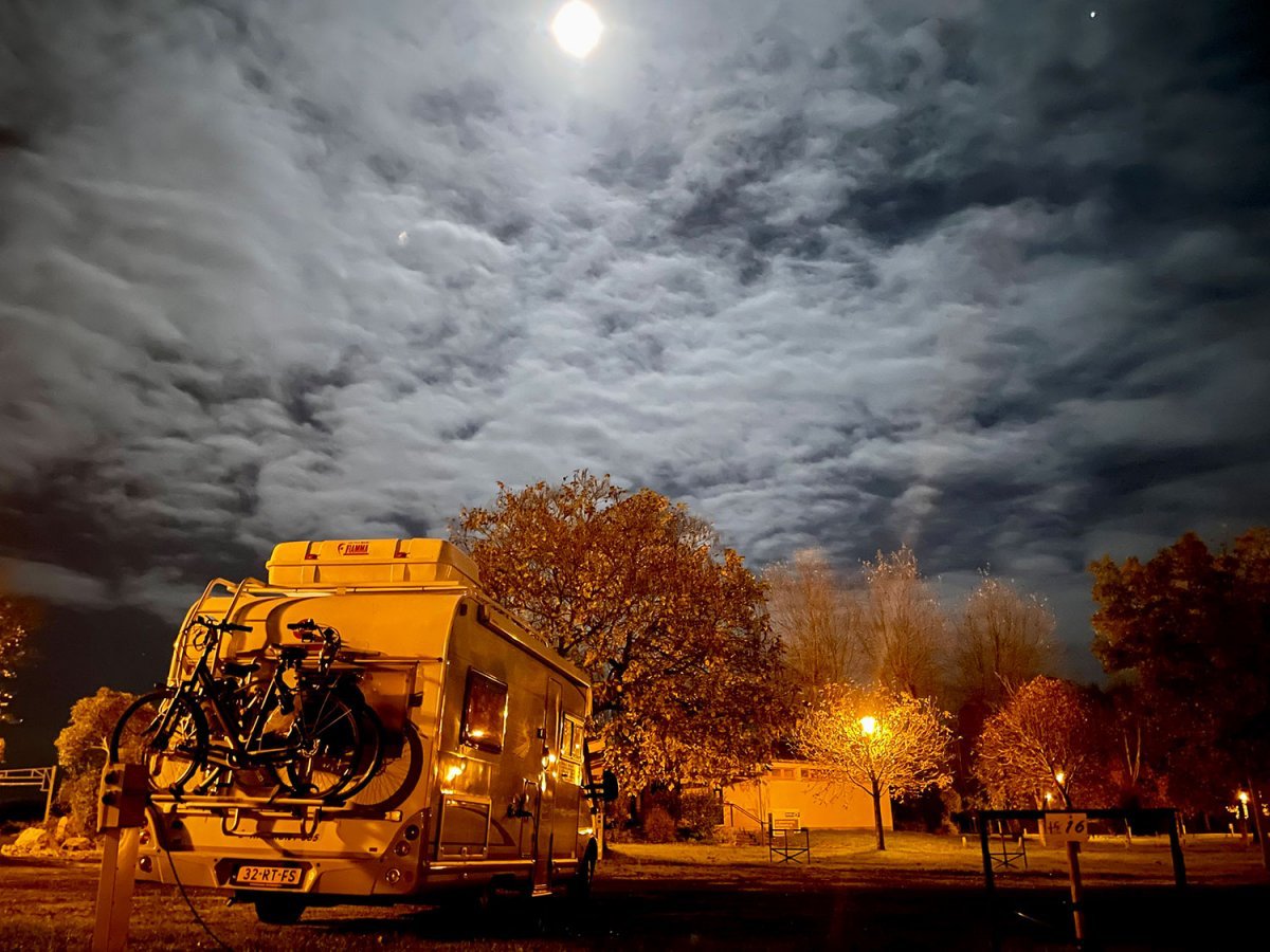 Na een lange dag zijn we aangekomen in La Suze-sur-Sarthe. Bij bijna volle maan hebben we de camper geparkeerd op een plekje vlakbij de uitgang.
