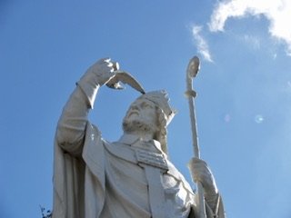 Wat me vooral opvalt zijn de talloze witte beelden. Ze staan overal – langs paden, bij kapellen, op binnenplaatsen. Ik laat me leiden door wat ik zie en leg ze vast met mijn Olympus.