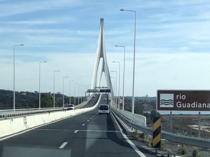 We rijden op de zesentwintigste dag van onze wintertrip, voor de 2de keer Spanje binnen op deze trip. Vanuit Monte Gardo steken we de grens over via een gigantische brug over de “Rio Guadiana” en dan zien we de Stier. Deze stier zie je eigenlijk wel overal in Spanje staan. Vooral aan de toegangswegen zie je hem. Een eindje verder komen we tientallen elektriciteitsmasten tegen met bovenin ooievaarsnesten. Prachtig om te zien, elk nest is bewoond door een ooievaarspaar. Ze cirkelen rond boven de snelweg en je vraagt je af wat ze hier te zoeken hebben. Nou wellicht het voorbereiden van een uitbreiding van de wereldbevolking.