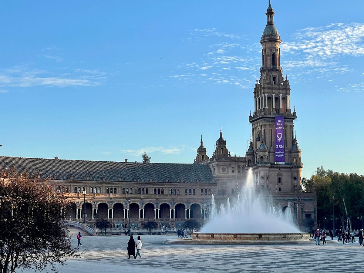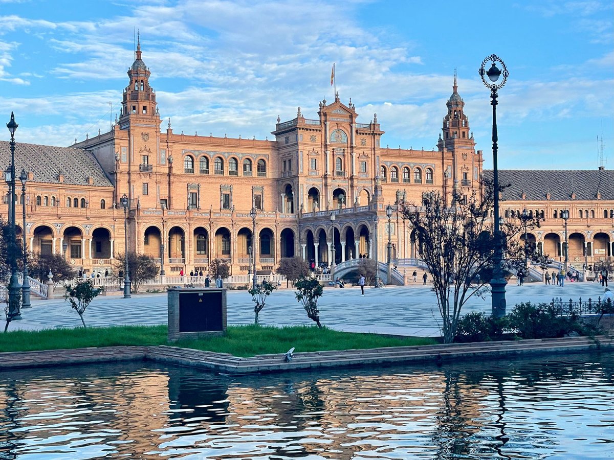 Als afsluiting besluiten we naar het beroemste plein van Sevilla gegaan. Het overweldigende Plaza de España. Dit plein vindt je in en het Maria-Luisa Park. Aan de voet van het gebouw vindt je 52 bankjes en mozaïeken van tegeltjes. Deze 52 fresco's beelden alle 52 Spaanse provincies uit. Overal op het plein en de bankjes zitten jonge kinderen en oude mensen. Overal hoor je Spaanse muziek en de vogels kwetteren er lustig op los. Een overweldigend gevoel geeft dat. Moe en voldaan gaan we terug naar de camper.