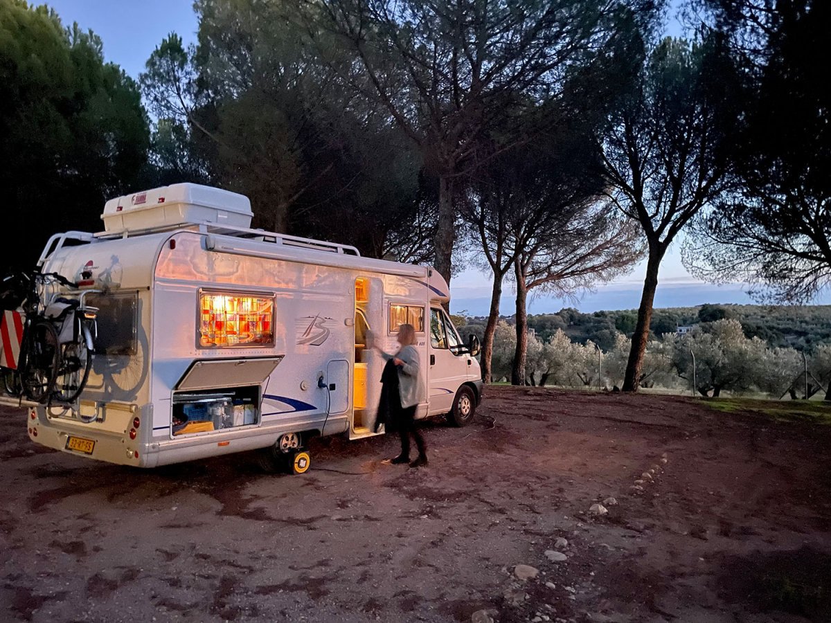 Deze camping ligt in het natuurpark Despeñaperros. Hier vindt je een prachtige, steilwandige rivierkloof die de achtergrond vormt van de meest dramatische toegangspoort tot Andalusië. Als enige natuurlijke onderbreking in de 500 km lange Sierra Morena was het vroeger een van de belangrijkste routes naar Andalusië vanuit het noorden en Madrid. Morgen gaan we eens kijken of we deze rivierkloof kunnen vinden per fiets. Ik neem dan de drone mee en hoop jullie bij het volgende stukje een overzicht te geven.