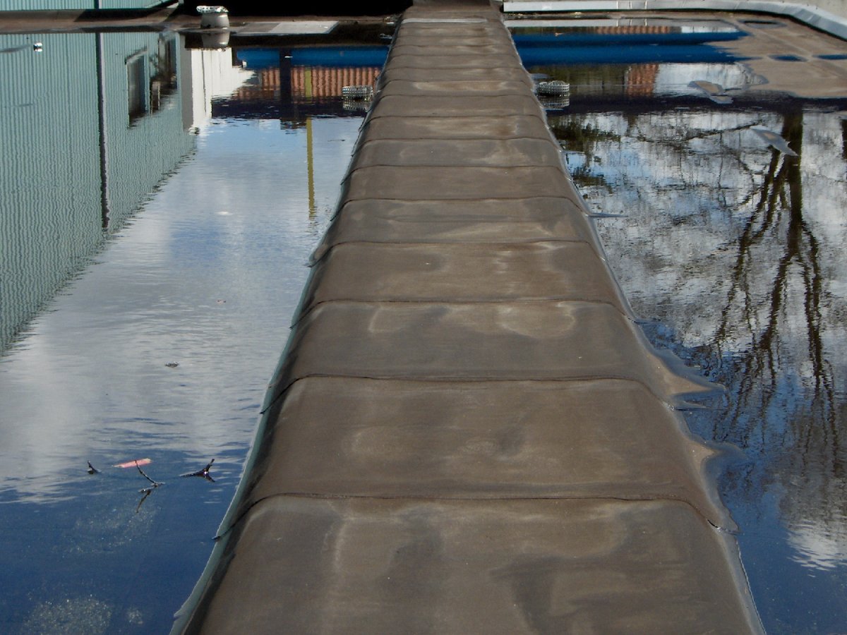 Bovenop een dak blijft vaak water staan. De lucht en andere zaken worden dan weerspiegeld.