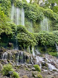 Na een autorit van ruim 2 uur zijn we aangekomen bij de Benang Kelambu waterval, een van de mooiste watervallen in Lombok. Deze waterval ligt een uurtje rijden van de Rinjani vulkaan. Dit is een nog actieve vulkaan en met 3.726 meter is het de op een na hoogste vulkaan in Indonesië. Om daar naar boven te klimmen moet je een betere conditie hebben dan dat ik heb. Midden in deze vulkaan ligt het “ Child of the Sea” meer. Vanuit hier ontstaan vele watervallen.