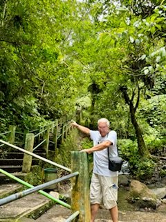 Het water wat omlaag komt is zo zuiver dat je het kunt drinken of je flesje ermee kunt bijvullen. Wanneer we op de parkeerplaats aankomen wordt ons verteld dat we verder achterop een scooter mee moeten. Het alternatief is een wandeling van 1 1/2 kilometer en dat zien we niet zitten. Nou dat ritje op de scooter zal me altijd bijblijven. Zo miserabel als dat ritje zul je niet gauw vergeten, heuvel op en af en bulten en kuilen in de weg die je nieren door elkaar schudden. En dan bij de waterval aangekomen blijkt dat we ook nog een steile trap van 130 treden af moeten lopen. Diezelfde route moeten we andersom ook nog terug. Maar de waterval is bijzonder mooi.